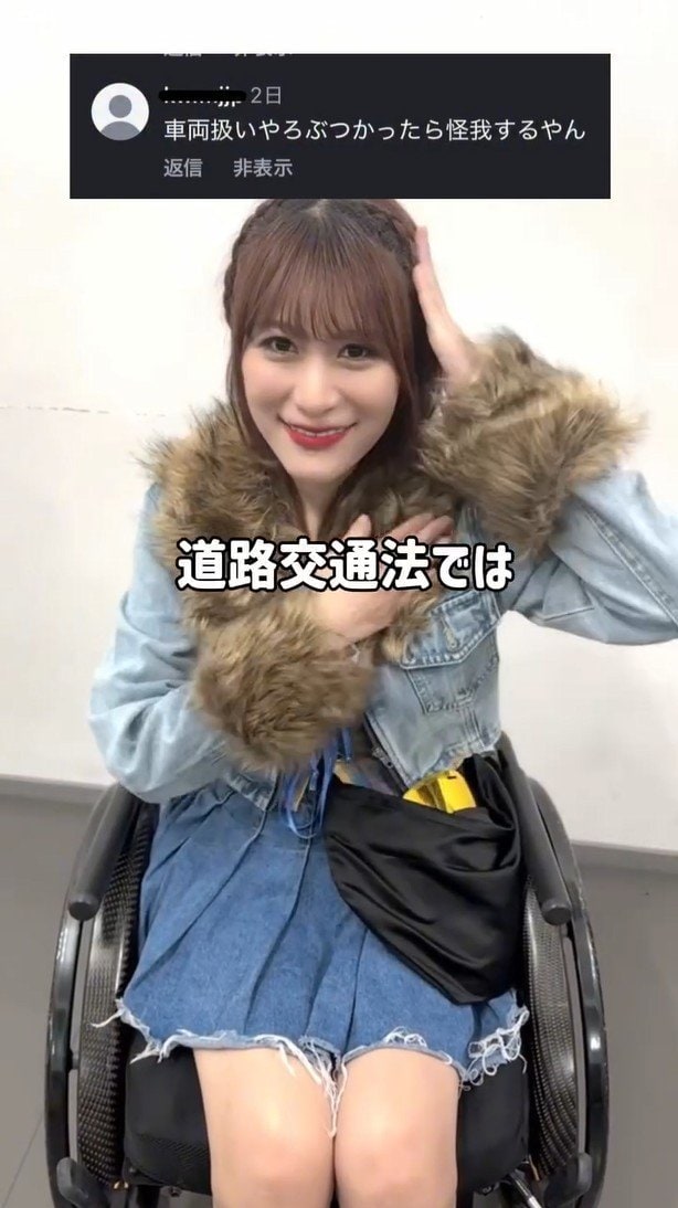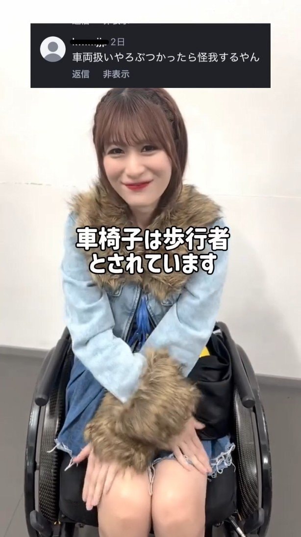 アイドルグループ「仮面女子」のメンバーで車椅子ユーザーの猪狩ともかさんが自身のインスタグラムで、道交法における車椅子の位置づけについて確認しています。
