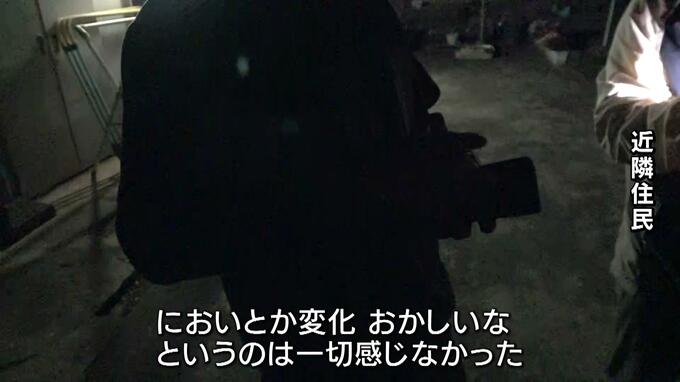 「私の親父は(発見日当日も)午前中に2回犬の散歩で歩いています。その時に何か気づいた?と聞いたら、においも何もないし分からなかった、まさかまさかと(言っていた)」