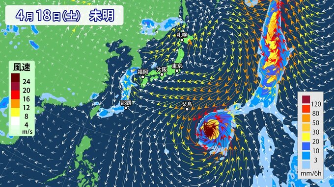 台風に比較的近い小笠原諸島では、大しけとなり強い風が吹くため、18日にかけて、高波に警戒し、強風に注意が必要です。