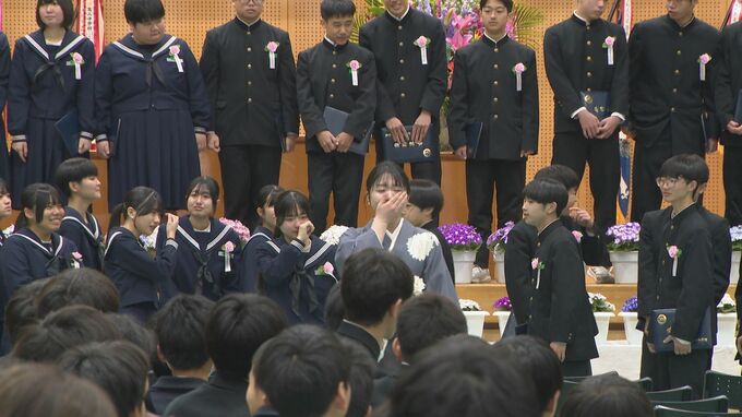 卒業生の答辞では、「私たちの歩みは決して孤独ではありませんでした。熱心にご指導してくださった先生方。時には厳しく、時には優しく、たくさんの言葉を注いでくださいました」という言葉が会場に響いた。