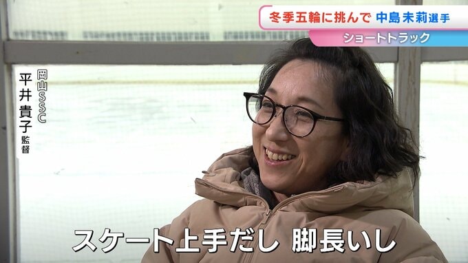 小学4年生の時に地元・倉敷市のスケートクラブでショートトラックに出会った中島選手。競技を始めた当初から頭角を現すと、倉敷高校進学後には、全国でもトップクラスの選手に成長しました。その才能を磨き上げたのが平井貴子監督。元五輪日本代表です。