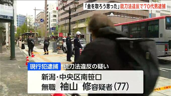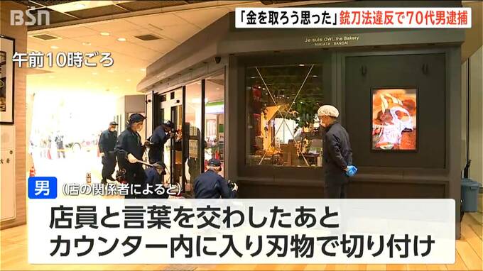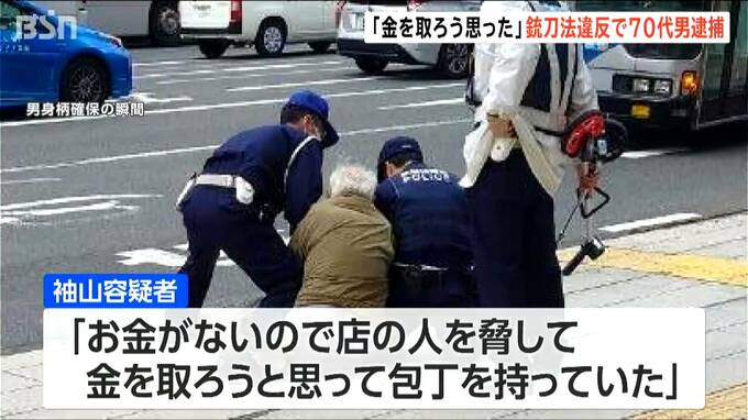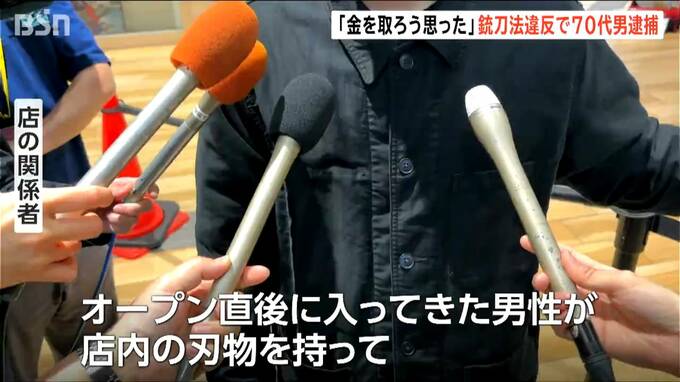 パン切り包丁1本を持っていた疑いで、男は容疑を認め「お金がないので店の人を脅して金を取ろうと思って包丁を持っていた」と話しているということです。