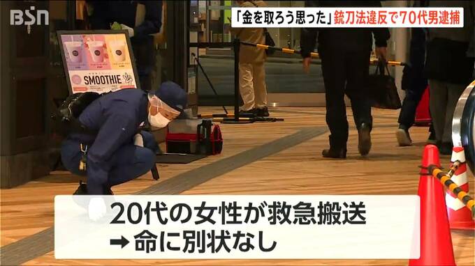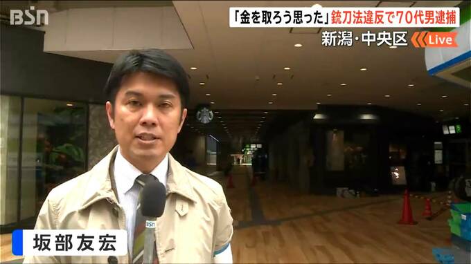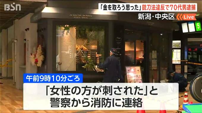 16日午前、新潟市 中央区 万代シテイのパン店で女性店員が男に刃物で切り付けられる事件がありました。77歳の男が銃刀法違反の疑いで現行犯逮捕されています。現場から中継です。
