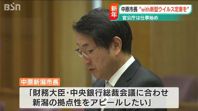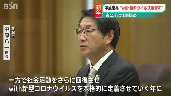 【新潟市 中原八一市長】「今年も引き続き皆さんと力を合わせ、感染対策・ワクチン接種等、怠ることなく徹底し、一方で社会経済活動を回復させ、with新型コロナウイルスを本格的に定着させていく年に」