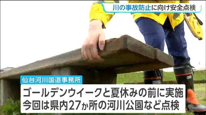 ゴールデンウィークを前に河川敷での事故を防ごうと4月16日、広瀬川の公園で安全点検が行われました。