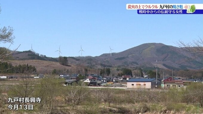 岩手県内では珍しい炭火を使った焼き麩づくりが、九戸村で今シーズンも始まりました。戦時中から続く地域の味です。九戸村長興寺地区。