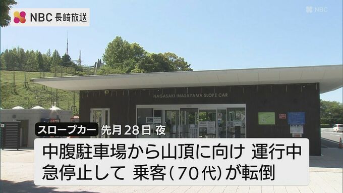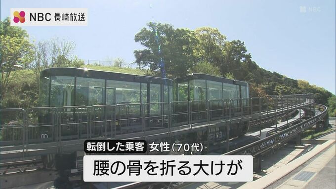 長崎市の稲佐山スロープカーが、運行中に急停止し、転倒した乗客が、腰の骨を折る大けがをしていたことがわかりました。
