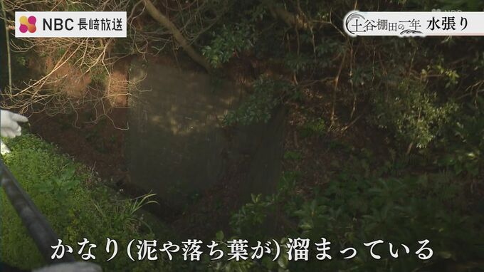作業する男性:「一年分の泥があって」「溜池まで200~300mぐらい。そっからずっと。生命線みたいな感じですね。」