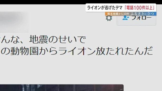 SNSへ投稿されたデマ「おいふざけんな、地震のせいでうちの近くの動物園からライオンが放たれたんだが 熊本」
