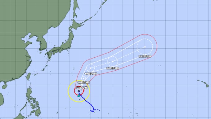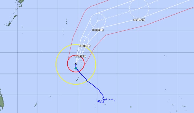 進行方向、速さ 東北東 65 km/h (35 kt)