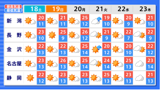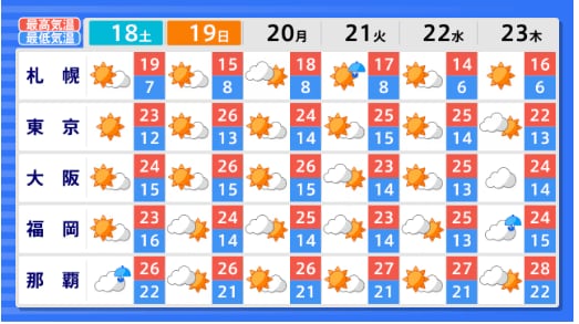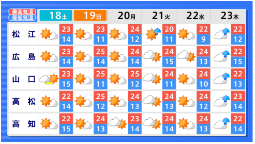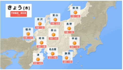 【早期天候情報】西日本はほぼ全域が真っ赤に...4月22日ごろ~「この時期としては10年に1度程度」の著しい高温となる可能性 関東甲信、北陸、東海、近畿、中国、四国、九州北部、九州南部・奄美 全国の天気を画像で 気象庁 テレビユー山形 2026年4月16日(木) 15:04 国内 ■全国の天気を地方ごとに(画像) 画像はTBS NEWS DIG Powered by JNNより 画像ありの記事を最初から https://newsdig.tbs.co.jp/articles/-/2604077?display=1