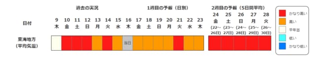 高温に関する早期天候情報(東海地方)