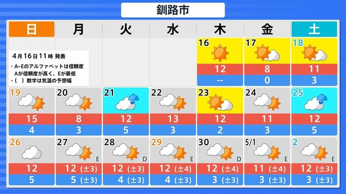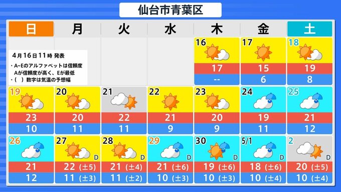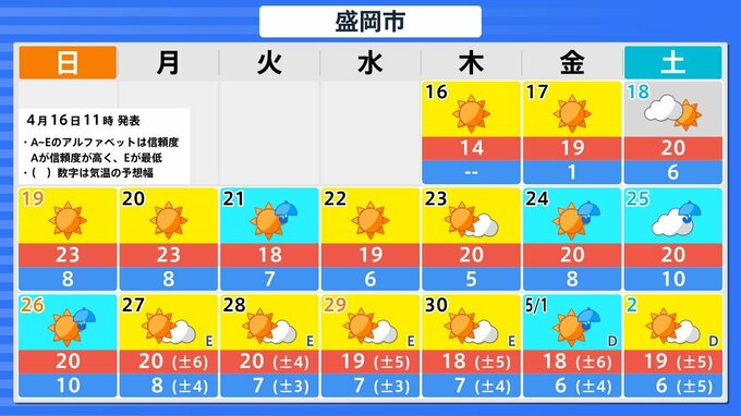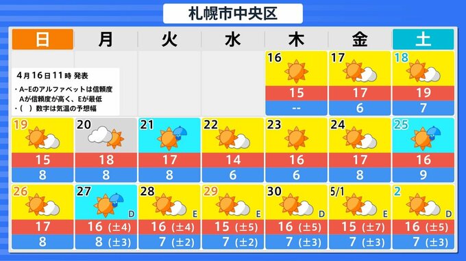 4月22日頃から「この時期としては10年に一度程度しか起きないような著しい高温」になる可能性 気象庁が「高温に関する早期天候情報」発表【関東甲信、東海、近畿、北陸、中国、四国、九州北部、九州南部、奄美】 南日本放送 2026年4月17日(金) 06:00 国内 全国47都道府県の16日間天気予報と予想最高気温(下に画像で掲載) 北海道、東北地方 北海道・札幌 北海道・釧路 青森県 岩手県 宮城県 秋田県 山形県 福島県