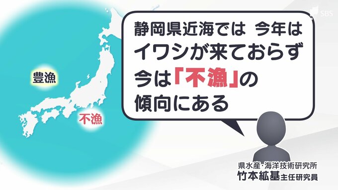 県水産・海洋研究技術所の竹本主任研究員によりますと、静岡県近海では海水温の上昇などもあってか、2026年はイワシが来ておらず、いまは「不漁」の傾向にあるということです。