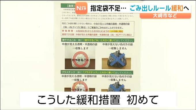 大崎市など1市4町では5月以降、ごみ袋の入荷が不安定になる可能性があり、大崎地域広域行政事務組合では、4月20日から5月19日までの1か月間、ごみ出しのルールを緩和することを決めました。