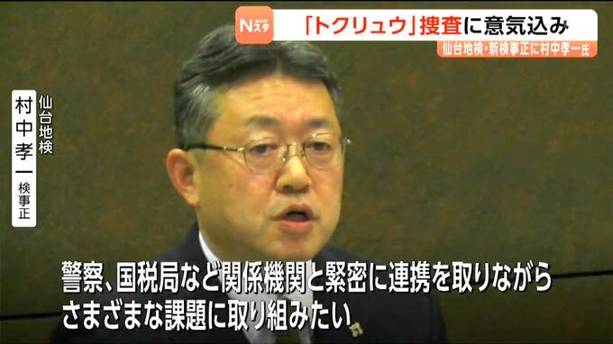 仙台地方検察庁の新しい検事正に村中孝一氏が着任し匿名・流動型犯罪グループいわゆる「トクリュウ」による犯罪について、「警察と連携し積極的に捜査に取り組みたい」と抱負を語りました。