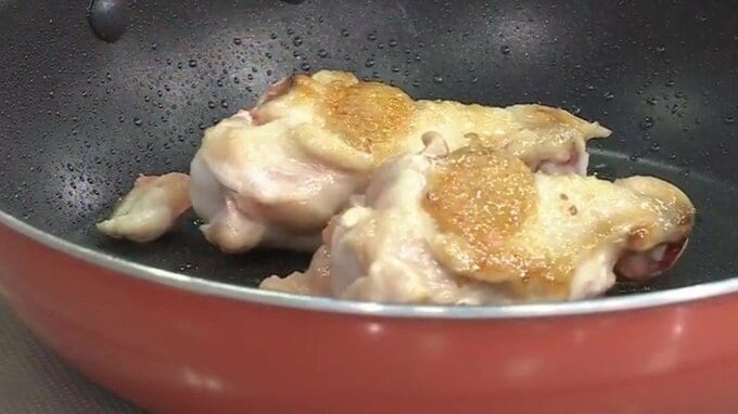 2.手羽元はこんがり焼いて余分な脂をふき取る。