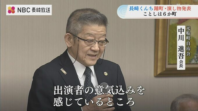 「龍踊」「コッコデショ」など 6か町 "長崎くんち 踊町発表" 10年ぶり奉納へ 各町の意気込み 長崎放送 2026年4月16日(木) 20:55 国内 元船町「唐船祭」 ”10年前から準備” 元船町が奉納するのは「唐船祭」 航海安全の神・媽祖さまを乗せた唐人船を豪快に曳き回します。 元船町自治会 中川進吾会長 「10年前から準備をしまして、出演者のみんなの意気込みを感じておるところであります」