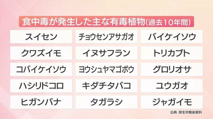 「わからないものは採らない。そして、食べない。そして、人にあげない、売らない。確実にわかっているものであっても、有毒植物と一緒に入ってしまって、一緒に取ってしまって、それを食してしまうという危険性がありますので、1本1本丁寧に取っていただくということが大事かと思います」