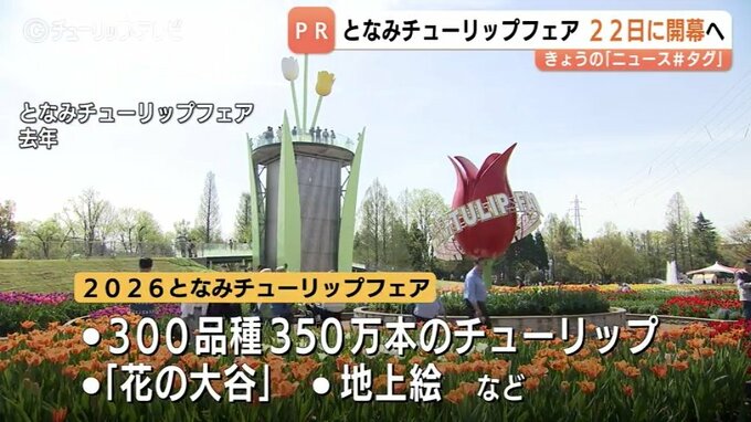 22日(水)に開幕するとなみチューリップフェアをPRするため、プリンセスチューリップの前田結衣さんらが26日、チューリップテレビを訪れました。75回目のことしは「想いをつなぐとなみ花物語」をテーマに300品種35…