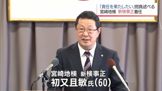 宮崎地方検察庁に新しい検事正が着任し、「検察組織を率いる者として、責任を果たしたい」と抱負を語りました。15日付けで宮崎地検の新しい検事正に着任したのは、初又且敏(はつまた かつとし)氏(60歳)です。初…