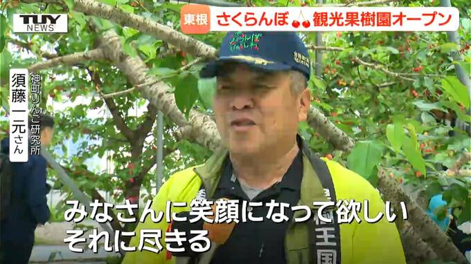 神町りんご研究所 須藤一元さん「園児も美味しいと言ってくれたし、その美味しいという言葉が我々にとって我々にとってやる気になりますし、山形のさくらんぼは大変美味しいさくらんぼなので、みんな力を込めて作っていますのでぜひとも食べに来ていただいてみなさんに笑顔になって欲しい。それに尽きる」