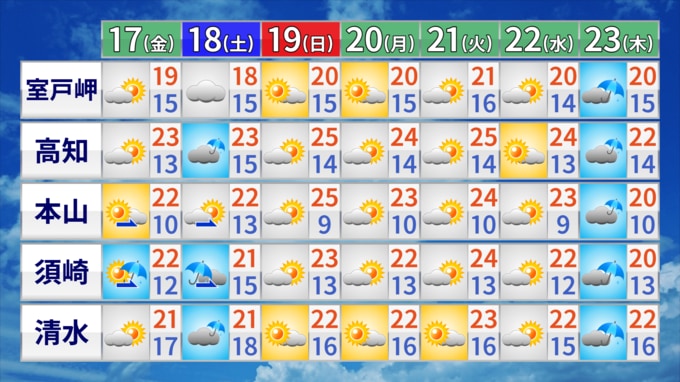 18日(土)は雲が広がりやすく天気のぐずつく所がありそうです。来週の前半は日差しが届きますが、同時に気温も上昇。連日の夏日となるかもしれません。半袖の出番が多くなるでしょう。