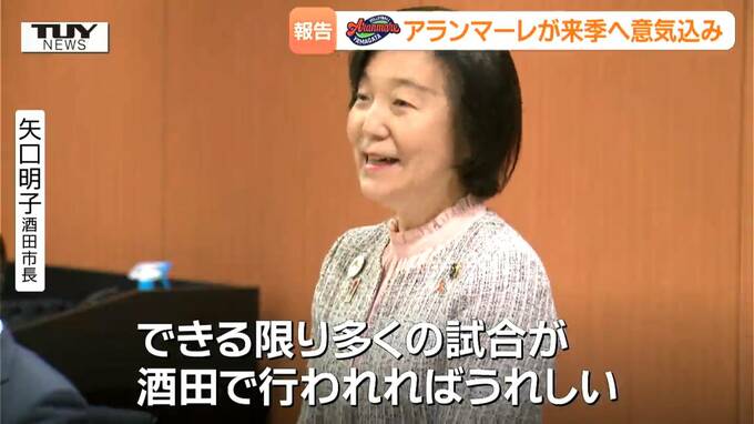 酒田市 矢口明子 市長「私たちはマザータウンでございます。第2の故郷という思いで酒田のことを思ってくれたらうれしいし、できる限り多くの試合が酒田で行われればうれしい」