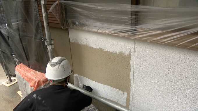 「水性の下塗り材です。振動とかでひび割れができるので、そこから水が入って中の木部とかを傷めちゃうので、それを防ぐための弾性塗料として塗っています」