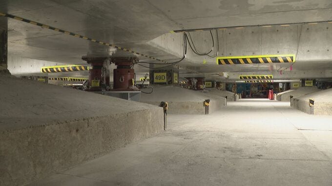 「仮受杭があって、その上にジャッキがある。真ん中が柱、基礎になる」