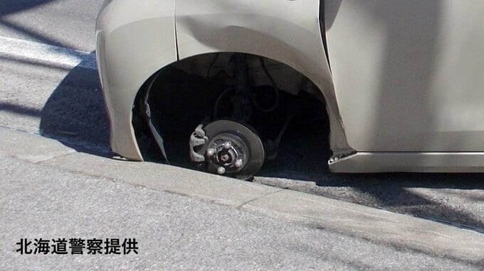 警察によりますと、脱落したタイヤは、軽乗用車を運転していた20代の男性が去年11月に自分で冬タイヤに交換していました。そして1週間ほど前に異音がしたため、この日、点検に向かう途中で、タイヤが脱落したということです。
