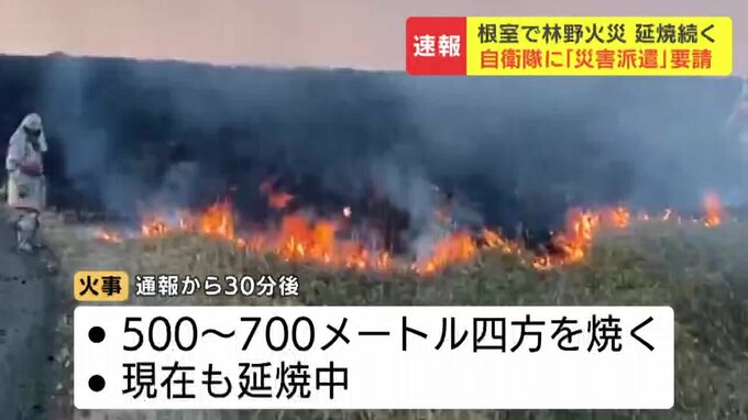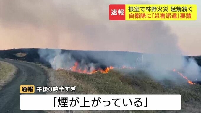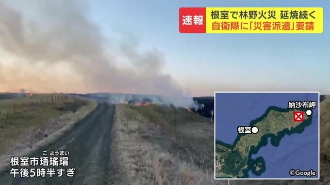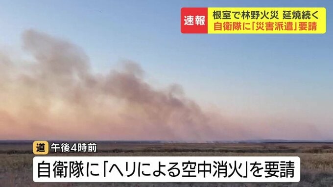16日昼過ぎ、北海道根室市で林野火災が発生し、北海道は、自衛隊に災害派遣を要請しました。