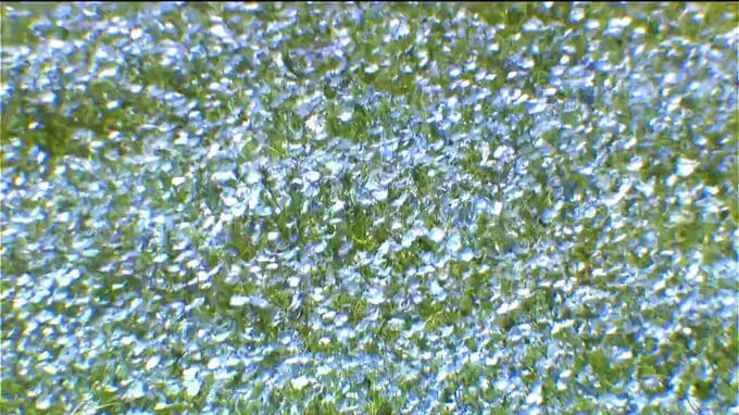(記者)「青空のもとではネモフィラの花が青いじゅうたんように広がっている」
