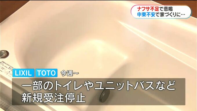 ホルムズ海峡が事実上封鎖されたことにより、ユニットバスなどの製造で必要な石油由来のナフサの調達が難しくなっているのです。