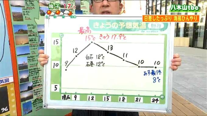 予想気温 仙台15℃「全国の県庁所在地で最低」