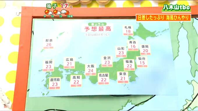 注目すべきは、この15℃という数値が全国の都道府県庁所在地の中で最も低いという点です。全国的に20℃を超える地点が多く、お隣の福島や山形では22℃から23℃まで上がる見込みで、これらの地域との行き来の際には、気温変化への注意が必要です。