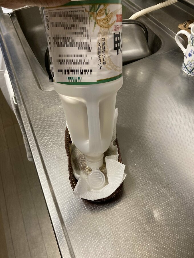 滝沢さんは「油のボトルは洗剤で洗わないでも、使った後のキッチンペーパーを敷いて、裏返せば、油が落ちるので、プラ資源に出すことができます!」と投稿。