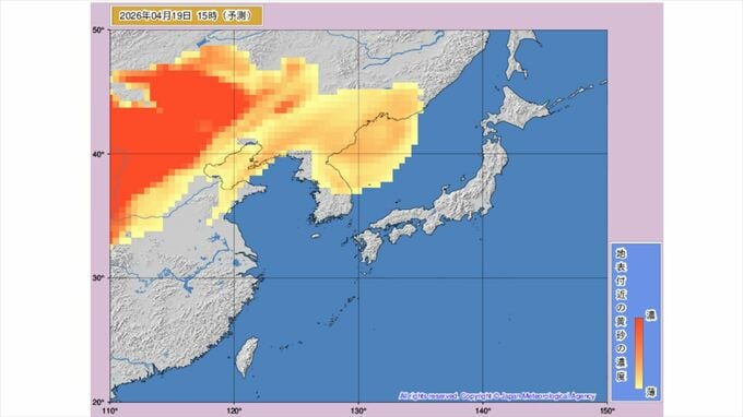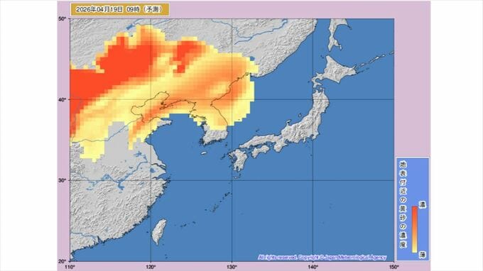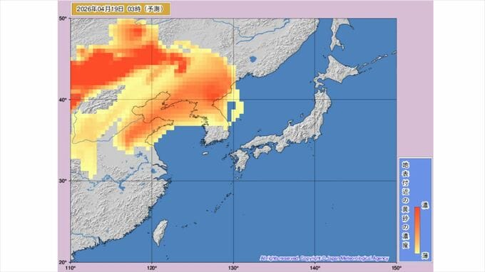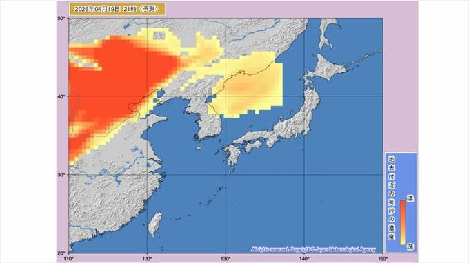 【黄砂情報】黄砂飛来か 20日に東北や北海道に 気象庁の「黄砂情報」シミュレーション