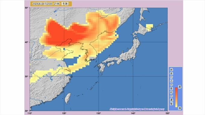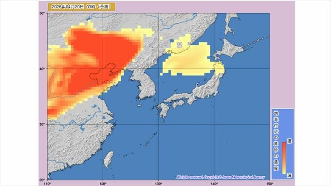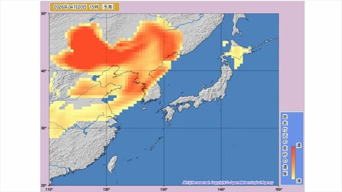 【黄砂情報】黄砂飛来か 20日に東北や北海道に 気象庁の「黄砂情報」シミュレーション