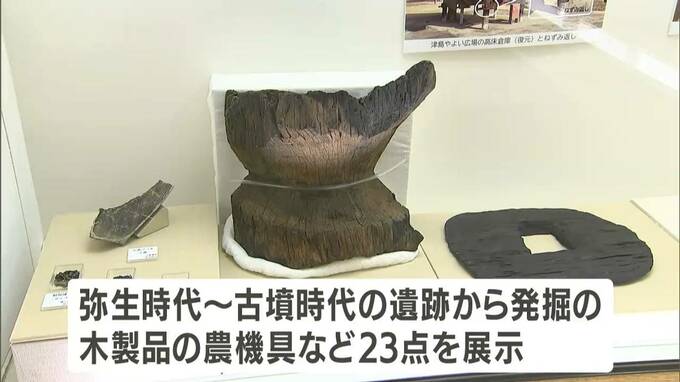 弥生時代から古墳時代の水田や遺跡の発掘調査で見つかった、農耕に関する道具を紹介する展示会が岡山市北区で開催されています。