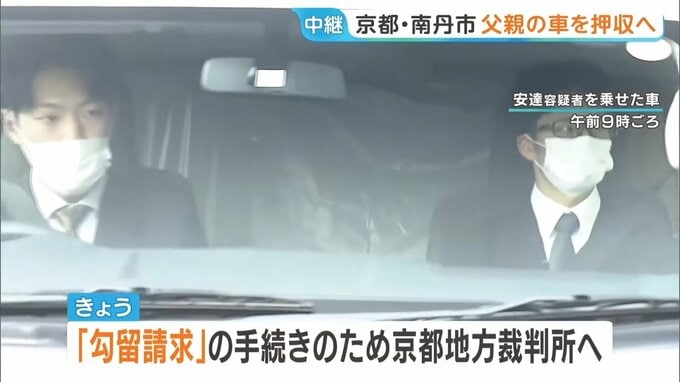 捜査本部が設置されている京都府警・南丹署です。午前9時ごろ、安達優季容疑者(37)は勾留の可否をめぐる「勾留請求」の手続きのため、捜査車両に乗せられ、京都地方裁判所に向かいました。