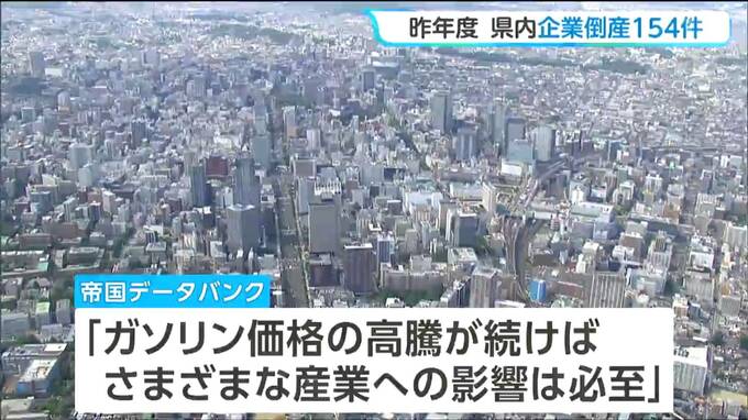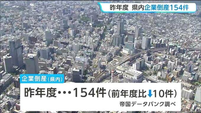 民間の信用調査会社=帝国データバンクによりますと、2025年度、宮城県内で負債を1000万円以上抱え倒産した企業の数は前の年度より10件少ない154件でした。