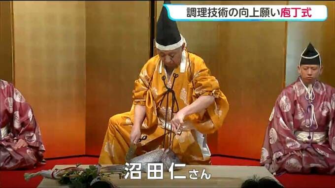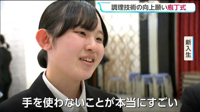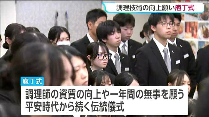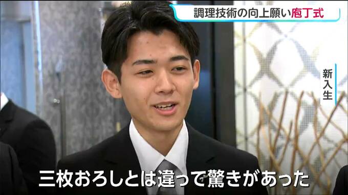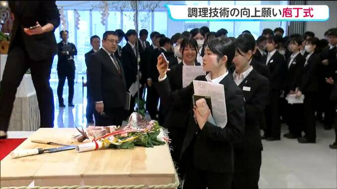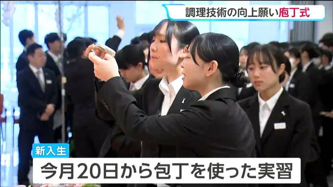 仙台市内の専門学校で4月17日、調理師を志す新入生が調理技術の向上や安全を願う伝統儀式の「庖丁式」に臨みました。