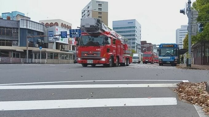 パレードは消防車両4台が火の用心を呼びかけながら市内中心部を巡回しました。
