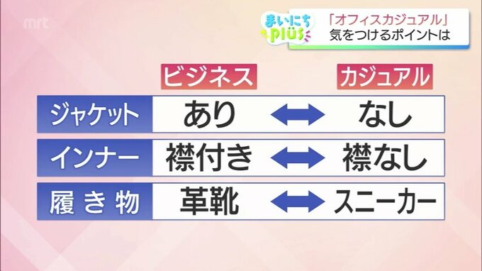 「最も大切なことは、TPOに合わせた着こなしです。例えば、外回りやお客様対応がある方と、内勤の方とでは、一言にオフィスカジュアルと言っても差が出てまいります」