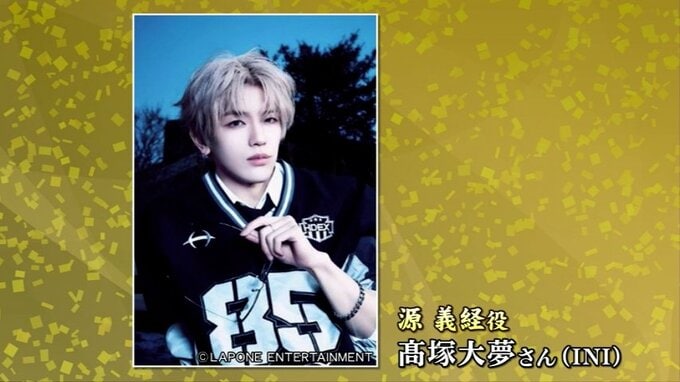 源義経役はダンスボーカルグループINIのメンバー、髙塚大夢さんが務めることが3月すでに発表されています。