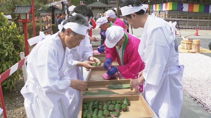 ◇参詣に訪れた人は…「今年は、桜がきれいですから、周辺の桜も綺麗やったし、ここもいつも来るし(楽しみ)。(餅は)兄弟がちょっと調子悪いし、あげようかな」