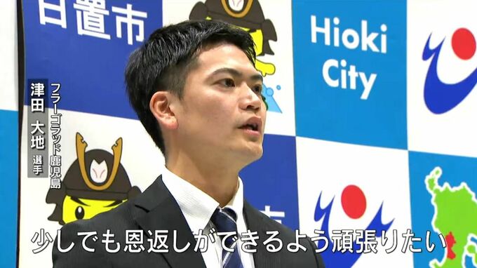 (フラーゴラッド鹿児島 津田大地選手)「技術指導やバレーボールの楽しさを伝えていけたら。日置市の皆さんには支えていただいた、少しでも恩返しができるよう頑張りたい」