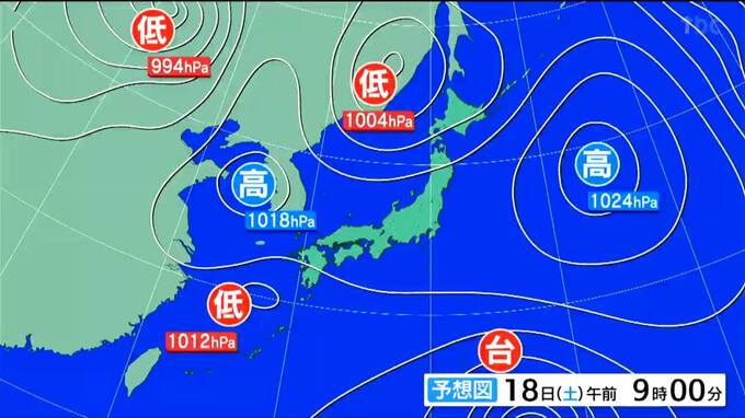 18日午前9時の予想天気図