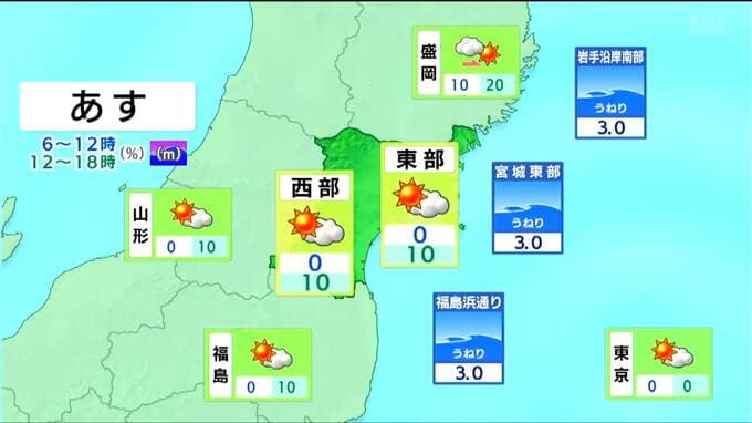 おおむね晴れや曇りですが西部の山沿いでは、にわか雨の可能性もあります。